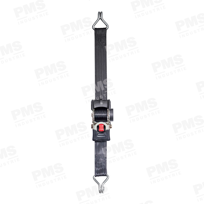Discover our self-retracting ratchet lashing systems, ideal for use on industrial vehicles or duty vehicles. By simply pressing the red button on the handle, the strap retracts automatically. These lashing systems are manufactured complying with EN 12 195-2 standard, have a covering LC of 1 500 daN – 2,25 T (breaking strength of the webbing only 2,25 T or 2 250 daN) and a STF of 180 daN.