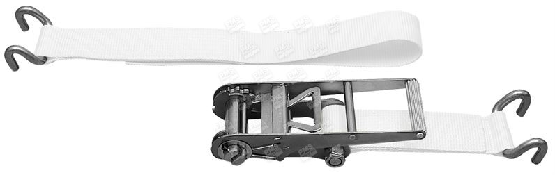 Regular product: effective working length 8 m, white webbing. Additional meter weight: 212 g. Internal range ref: 7A. This range is available with: - Covering LC 10 000 daN (breaking strength of the webbing only 15 T): ref. 975 5.00 (internal ref: 77A). - A progressive release ratchet: ref. 975 DP (internal ref: 7B). - A NATO green painted ratchet: ref. 975 VO (internal ref: 7W). Customized manufacturing possible: mm specific length, marking and color of the webbing, identical or different fittings… Depending on your use, a wide range of protections is available: polyurethane or PVC sleeve, polyurethane protection keeper, etc.Features