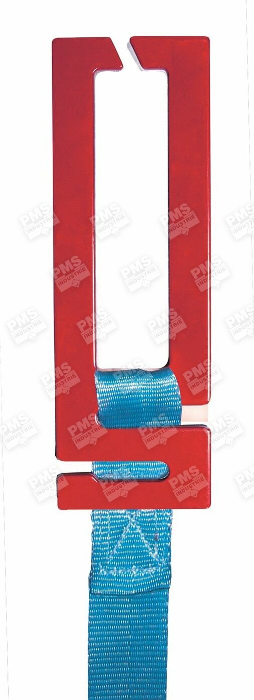 Polyester webbing with painted steel split flat strapping hook. 1 part system, certified configuration.