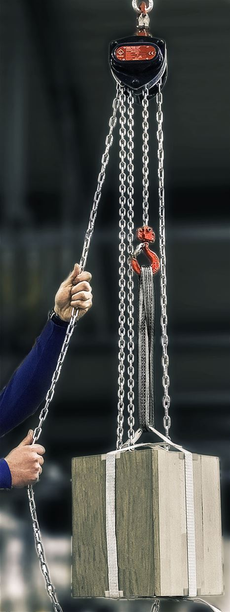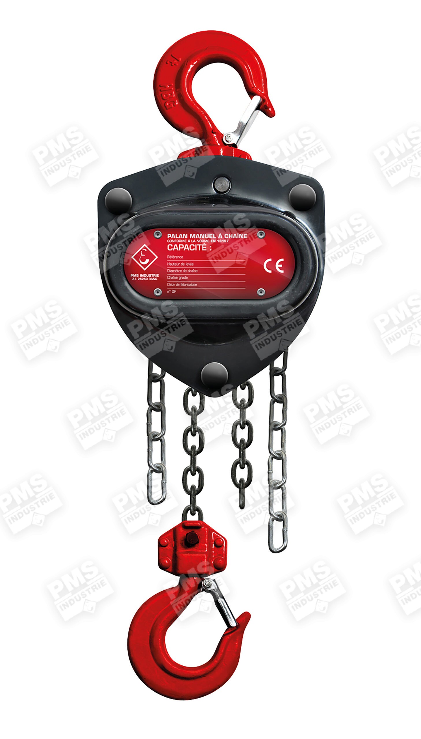 Complying with EN 13 157+A1 standard. Several references available, WLL from 0,5 to 20 T. Regular chain length: 3 m (customized length possible). Calibrated grade 80 lifting chain with short links. Two packagings possible for this product: bucket for capacities up to 1 500 kg, cardboard beyond. As with any lifting accessory, manual chain hoists are subject to mandatory periodic audits. Thanks to our control laboratory, we can help you meet this obligation.Features