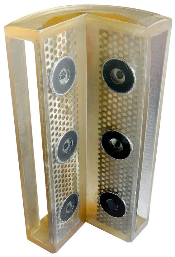 Magnetized polyurethane corners must be used in pairs to secure operations with highly edged loads such as coils. They are designed to protect wire ropes cable, chains (up to 40 mm diameter), lashing systems or flat webbing slings (from a 65 mm width).