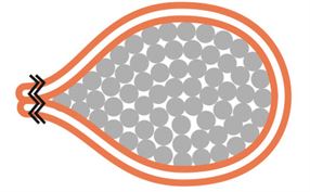 L’écheveau de fils composant l’âme de l’élingue est prisonnier sur la gaine qui est ensuite repliée et cousue afin de fournir une double épaisseur de gaine textile.
