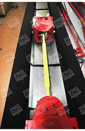 Le produit à tester est maintenu entre les deux axes du banc, puis soumis à une traction via l’élévation du vérin hydraulique.